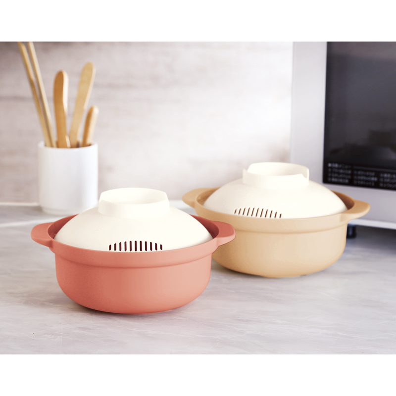 さらに本体の内側には水分量を示す目盛り付き。これなら軽量カップも必要なく、時間のない時もパパッと作れて洗い物も極力減らせるというお助けマンです。電子レンジ専用なので加熱中は他の家事などを進めることができますし、火や油を使わない分、とってもヘルシーです。