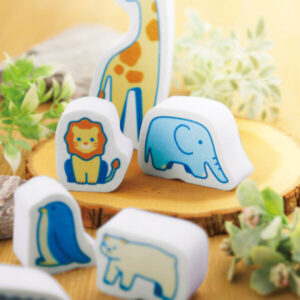 まず、人気の動物6種類をかたどった、それぞれ異なるシルエットのかわいらしさに癒されます。受け取った際のパッケージでも分かる通り、パズルのように組み合わせたり積み木に見立てて積み上げて遊んだり…と親子で遊ぶことができるのは大きな魅力です。