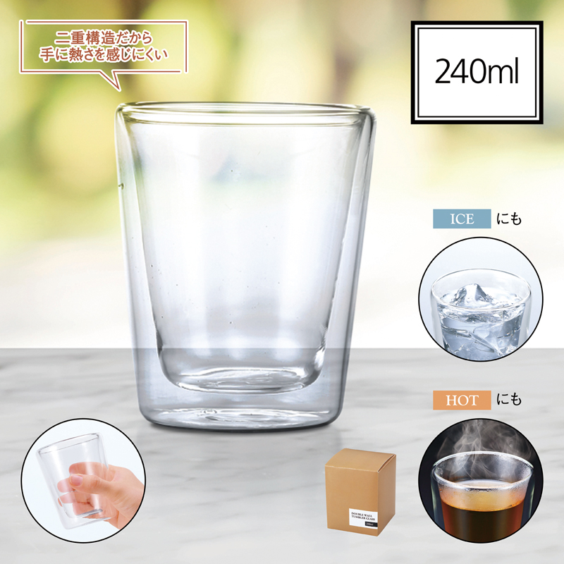 爽やかな透明感が魅力のグラスは、見た目から“涼”を感じさせてくれます。「ダブルウォール耐熱タンブラーグラス」は、そのガラス製の魅力だけでなく、二重構造(ダブルウォール)のメリットを最大限に生かしたおすすめのアイテムです。