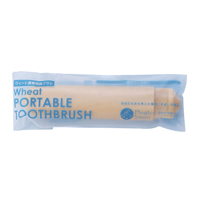 「ウィート携帯用歯ブラシ」もそのひとつで、本体部分の素材にはストローファイバーを30%配合しています。ちなみにストローファイバーは、本体樹脂の約50%に麦わらの繊維を配合した素材のことで、プラスチックの使用量削減に大きく貢献している、注目のエコ素材のひとつ。軽量で触り心地もプラスチックとほとんど変わらないうえに、天然素材特有のナチュラル感も感じられるという、魅力溢れる素材です。