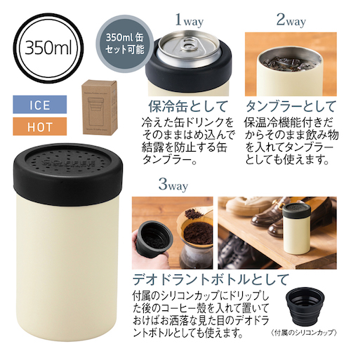 美味しさをキープする真空二重構造の保冷缶。使う楽しさが広がる3WAYの機能派です。 エコやSDGsなど環境に配慮したノベルティアイテムが増える中、生活雑貨で選ぶなら誰もが使うドリンク関連アイテムがおすすめ。シンプルでスタイリッシュなユニセックスデザインなら、どんなイベントにも使えます。企業や会社の販促品・ノベルティでお困りの場合、おしゃれで安いオリジナルのものをご提案します。