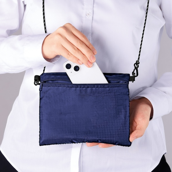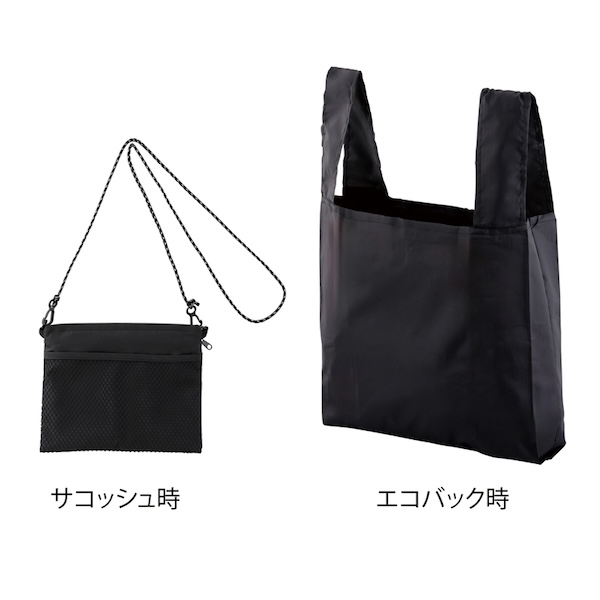 外出時はサコッシュで軽快に出かけ、帰りはエコバッグになる2WAY仕様。
