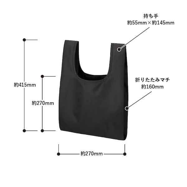 本体/約270x270(持ち手含む415)(mm)、持ち手/約55x145(mm)、折りたたみマチ/約160(mm) 容量:約8L |