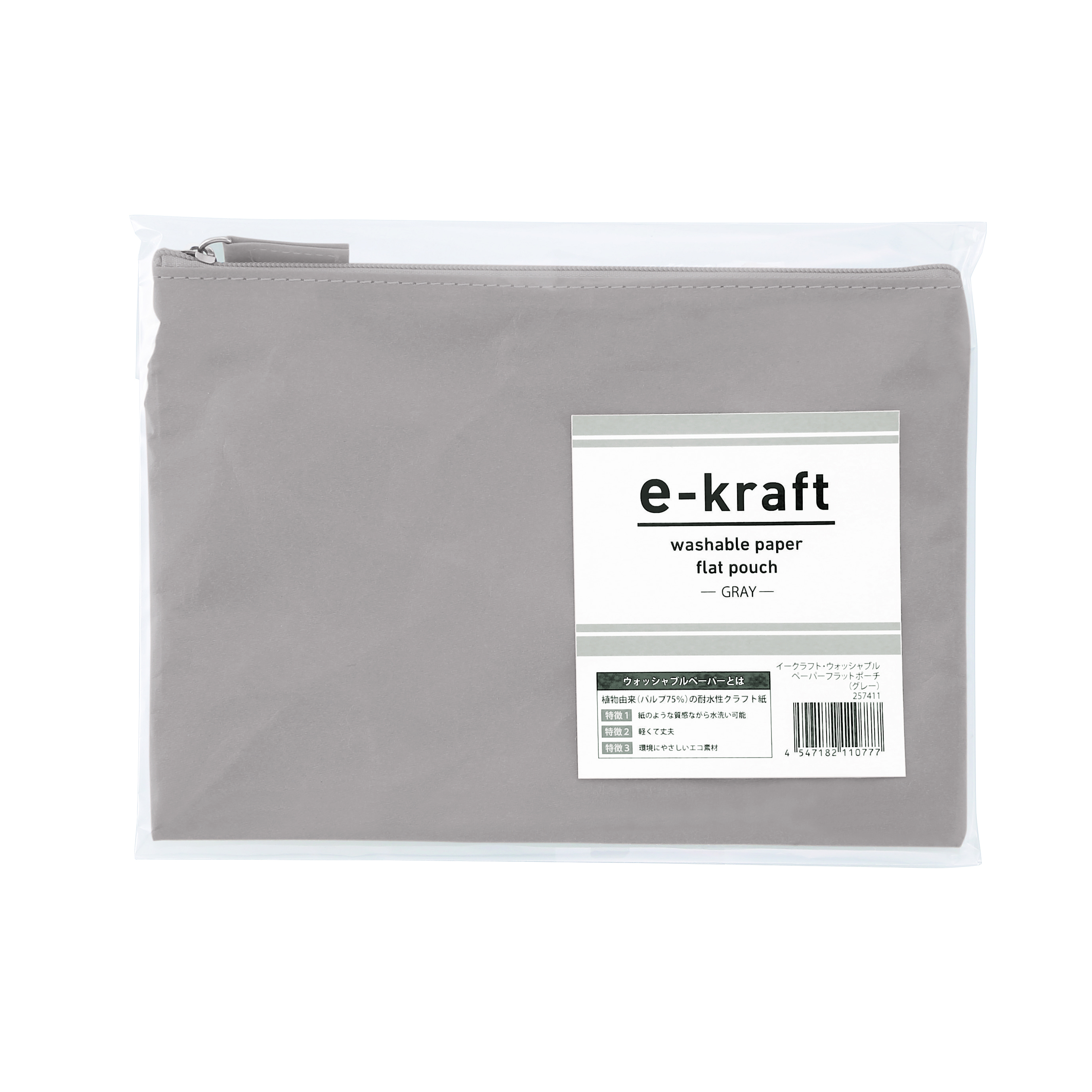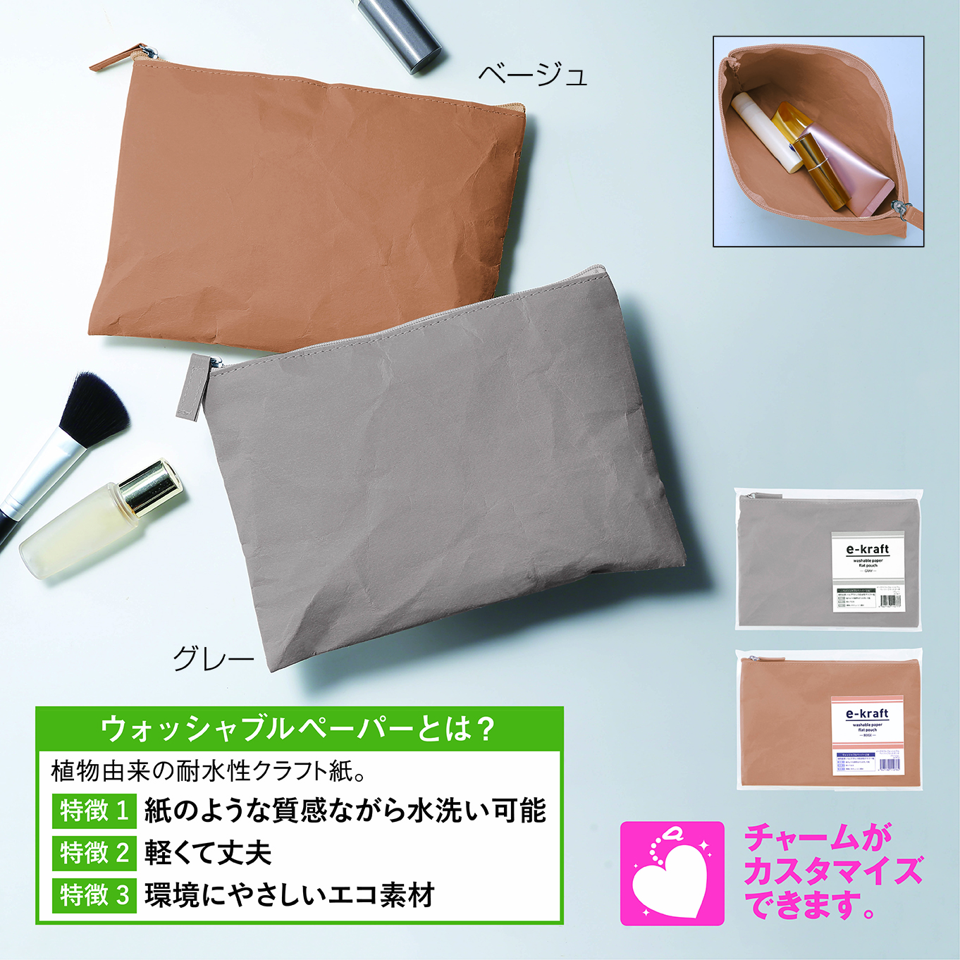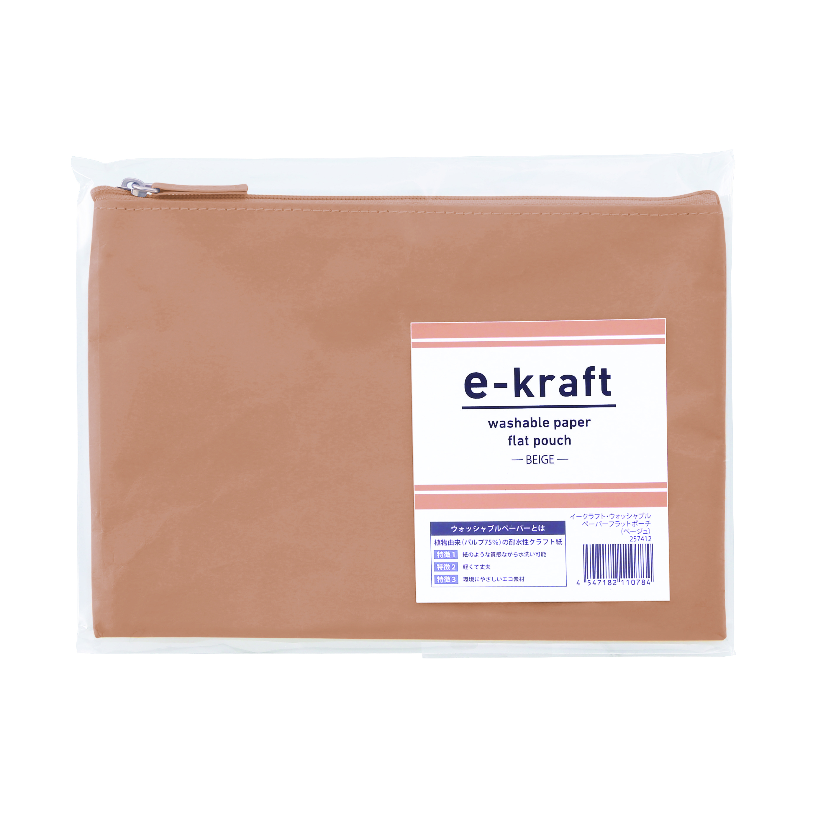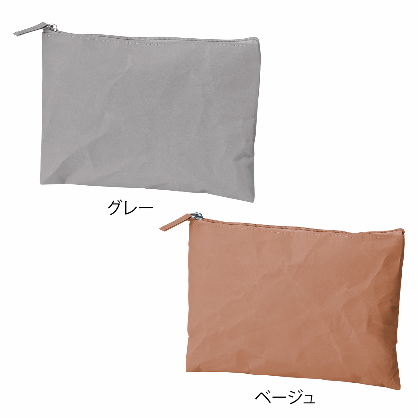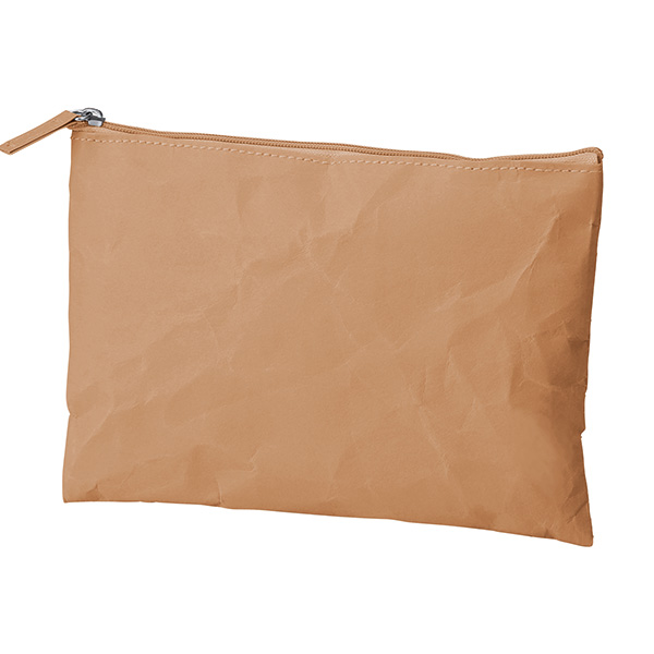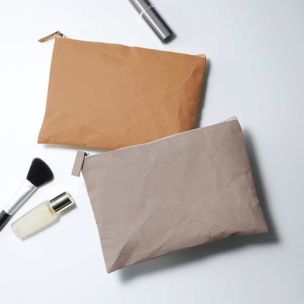 性別問わず使えるナチュラルカラーのシンプルポーチ。フラット型なのでバッグの中にもすっきり収まります。