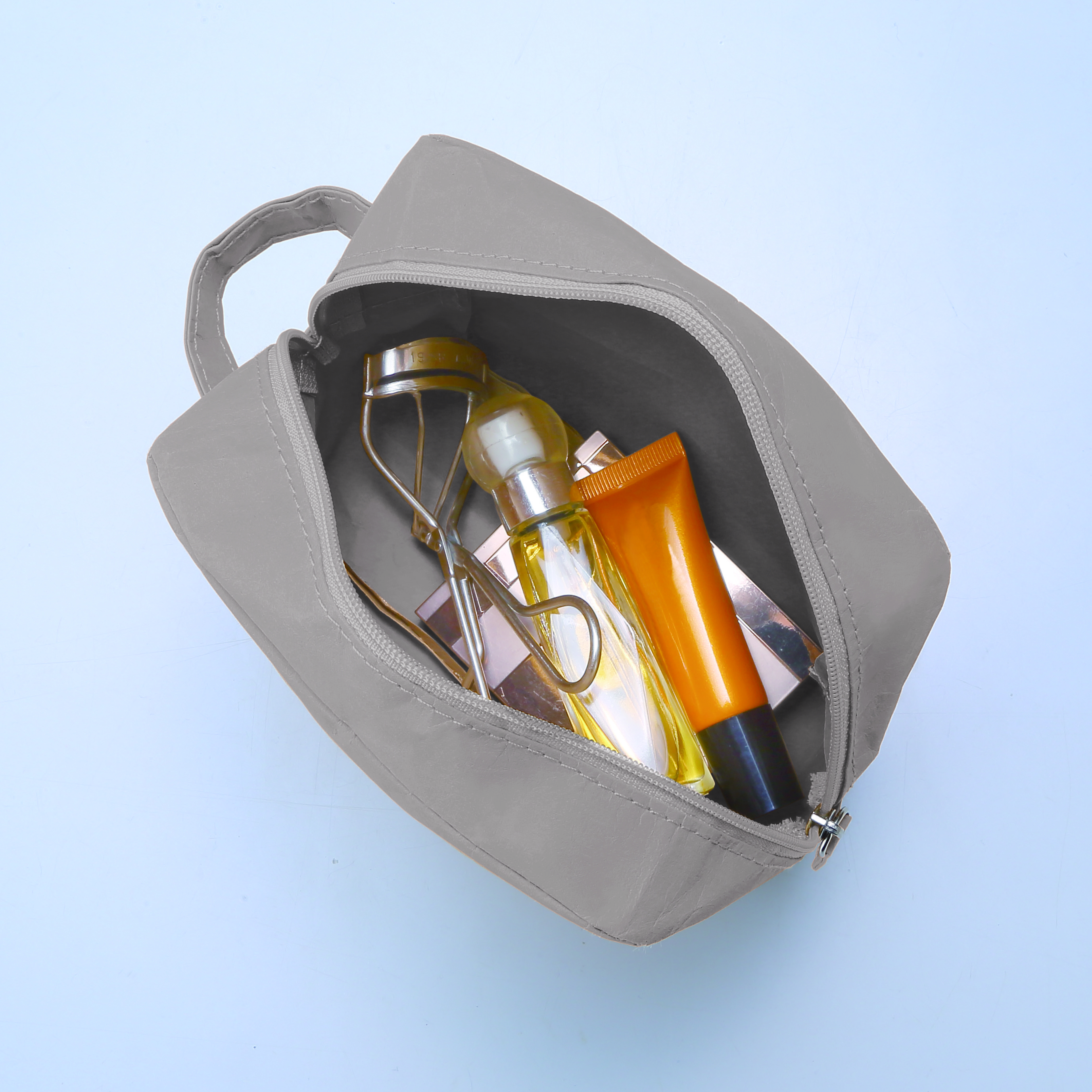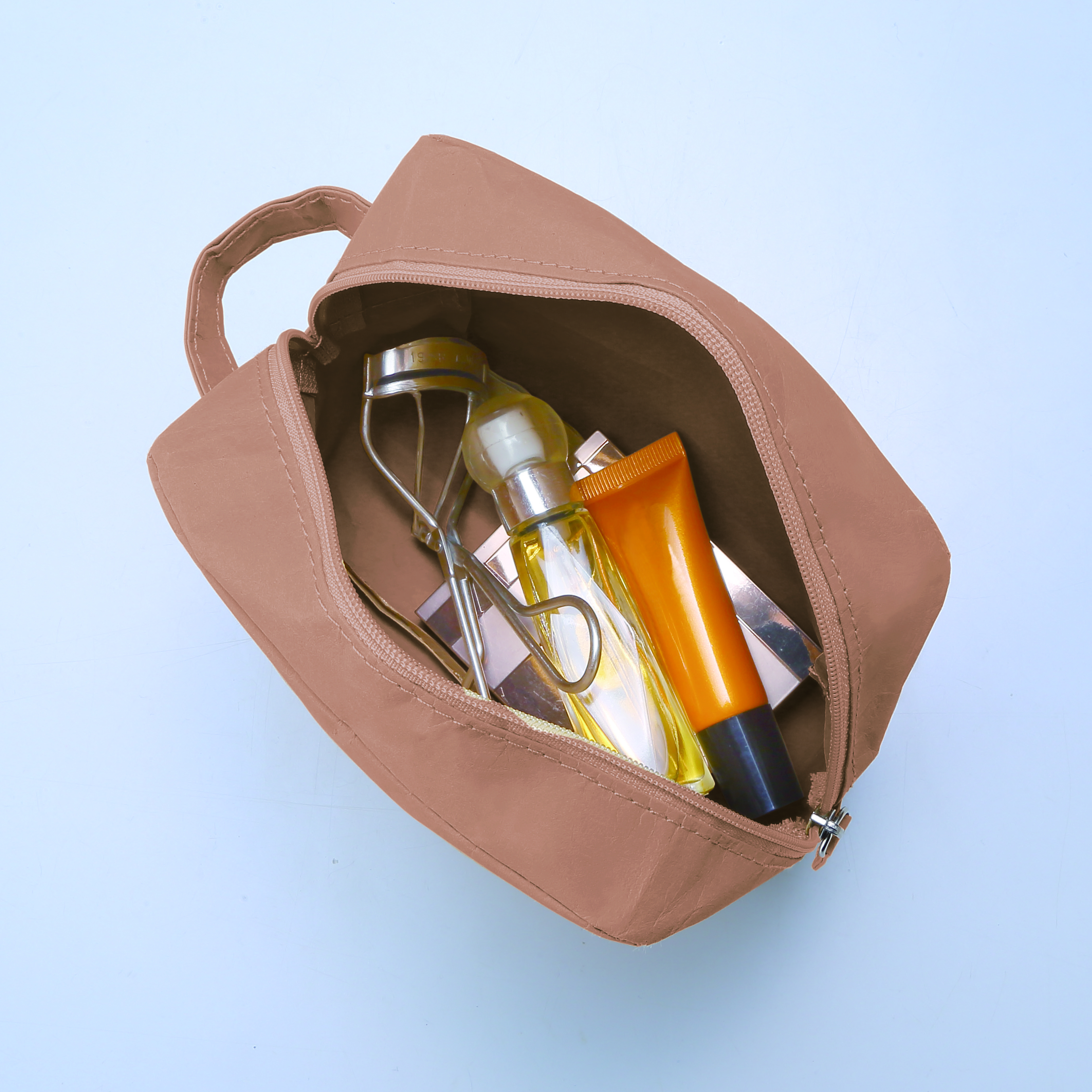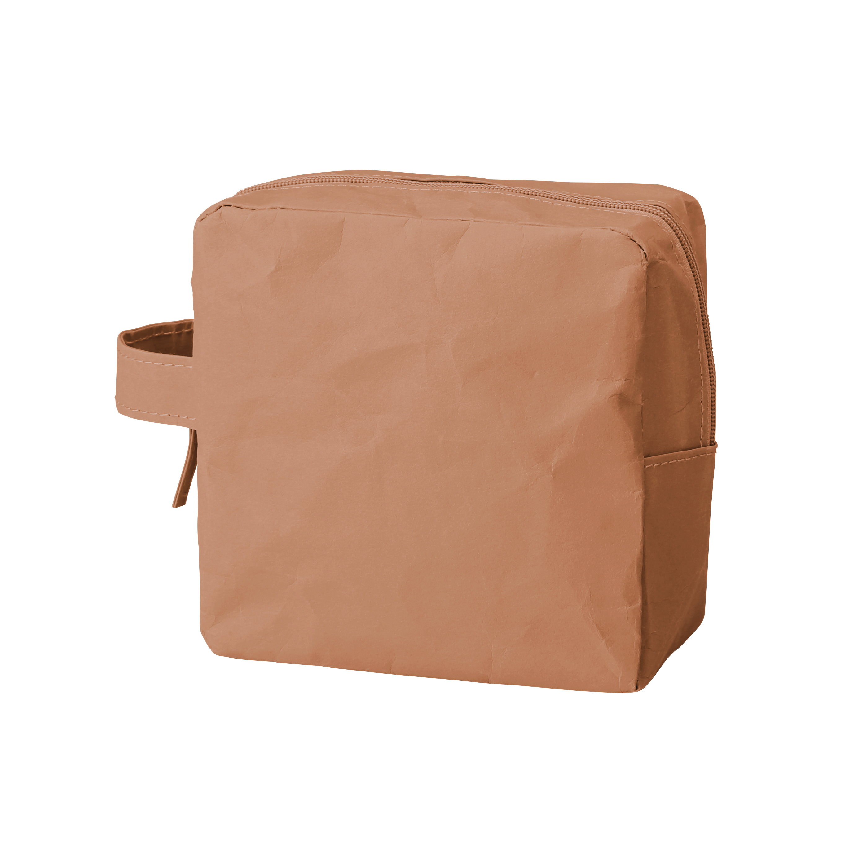 自立する端正なフォルムのスクエア型。持ち運びに便利な持ち手がポイント!大きく開くので出し入れも◎