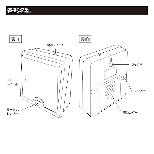 モーションセンサーが反応すると自動でLEDが点灯する仕様です。