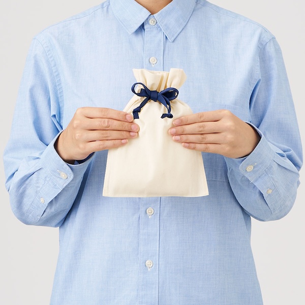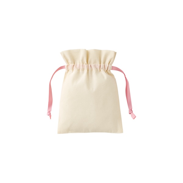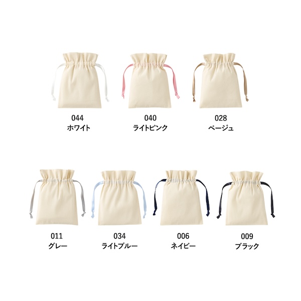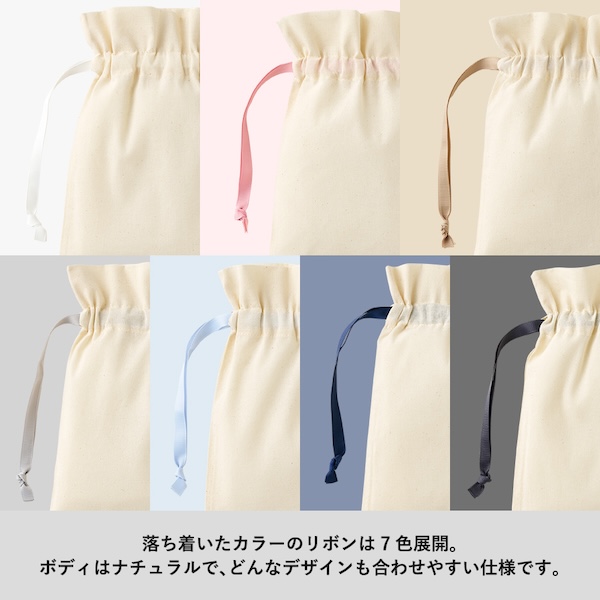 7色展開のカラーリボンがポイントのコットン巾着です。
