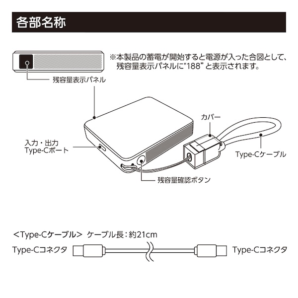| 備考 | 取説付、最大出力3A、バッテリー容量5000mAh、本体重量約95g、デジタル表示機能付 |