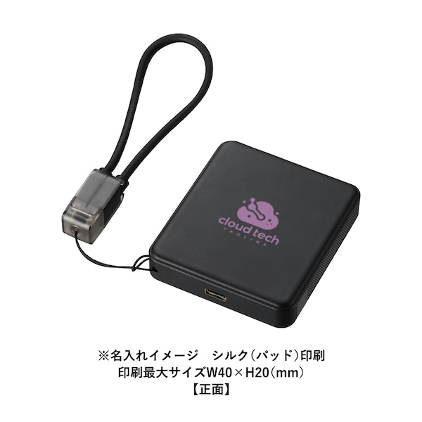 全面印刷対応!ケーブルをストラップとして携帯できるモバイルチャージャーです。