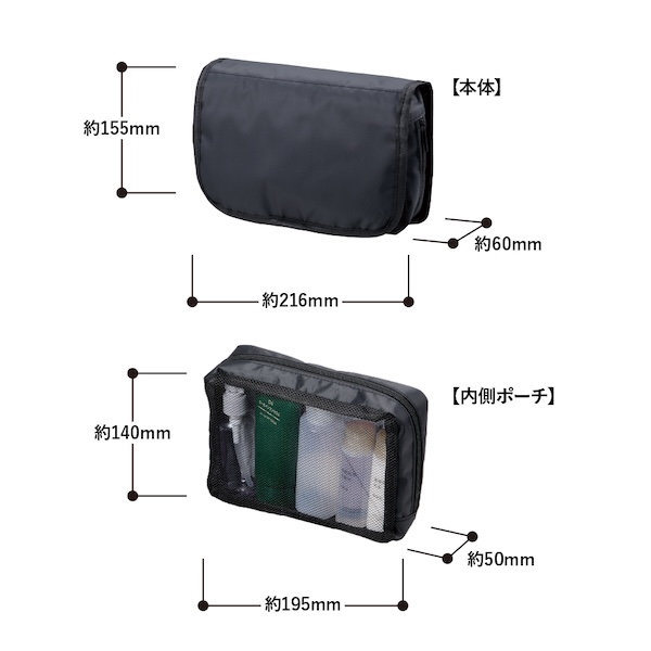 | 商品サイズ | 本体/約216x155x60(mm)、内側ポーチ/約195x140x50(mm) |