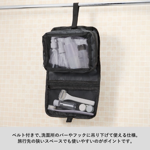 ベルトで吊り下げて使えるトラベルポーチです。