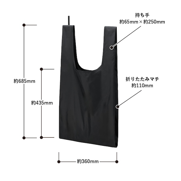 | 商品サイズ | 本体/約360x435(持ち手含む685)(mm)・持ち手/約65x250(mm)・折りたたみマチ/約110(mm) |