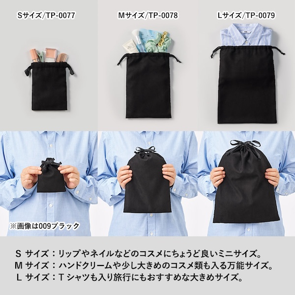 S・M・Lの3サイズ展開で、Lサイズは薄手のシャツなども入るため