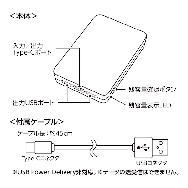 | 備考 | 取説付 最大出力2.1A バッテリー容量8000mAh 本体重量172g Type-Cケーブル付属 残量表示ランプ付 |