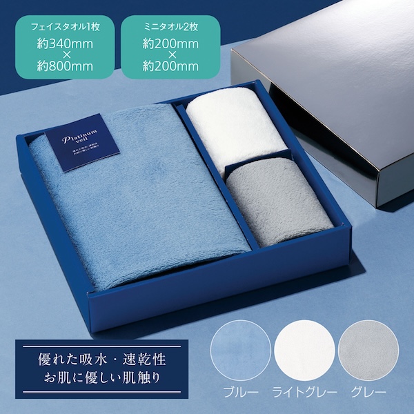 フェイスタオル:約340×800mm ミニタオル:約200×200mm |