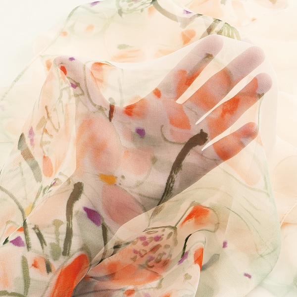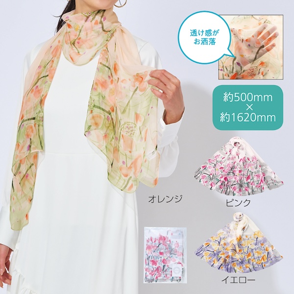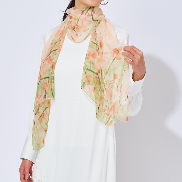 手軽に華やかさを演出できる薄手の軽やかなストールです。