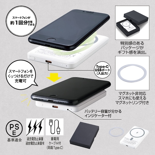 | 備考 | セット内容:本体、蓄電用ケーブル(両端Type-C)、マグネットリング |