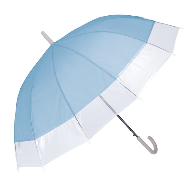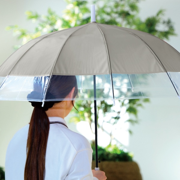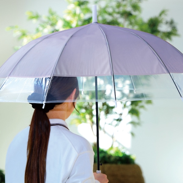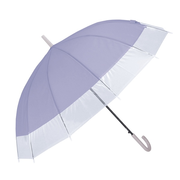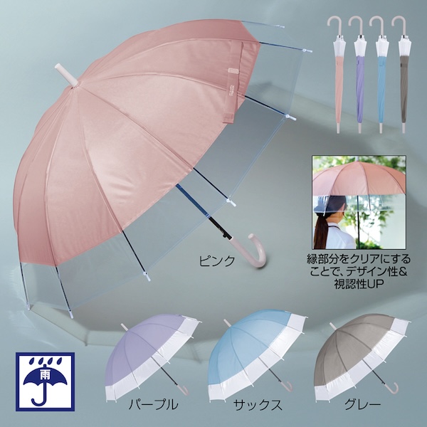 グラスファイバー骨12本の耐久性に優れた傘。クリア×カラーのバイカラーでさり気なくセンスもアピールします。