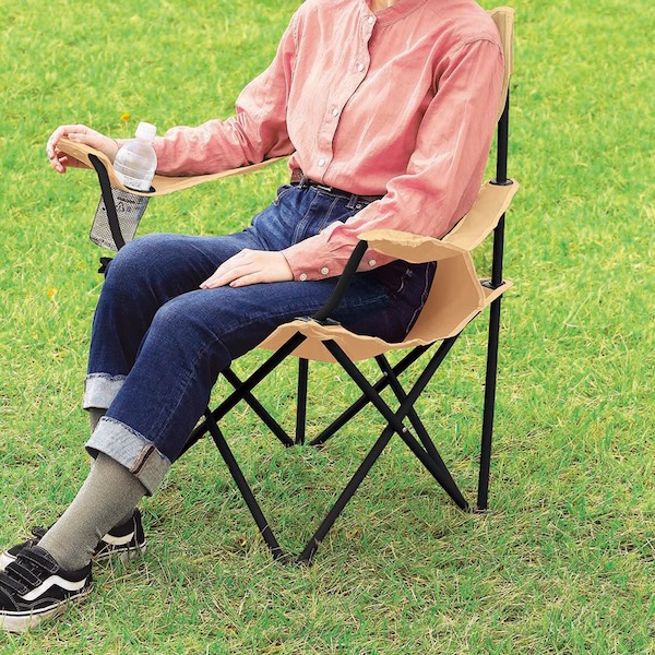 ドリンクホルダーを備えたアームレスト付きなので、スポーツ観戦など長時間の利用に◎。