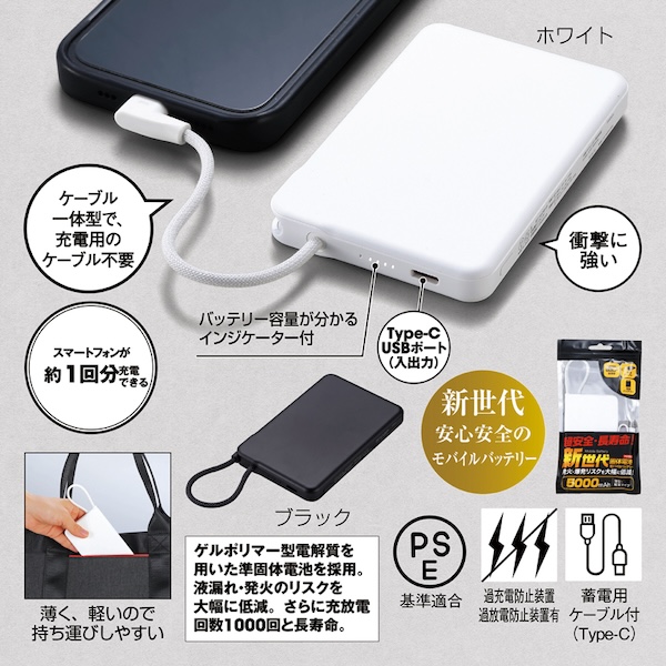 発火リスクを大幅に低減。準固体電池を使用した新世代のケーブル一体型モバイルバッテリー。