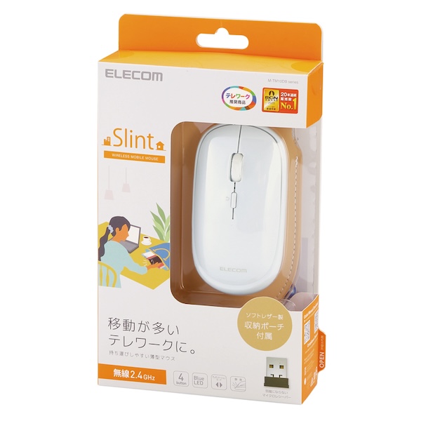 マウスを守る収納ポーチ付き。薄型設計で携帯に便利なマウスです。