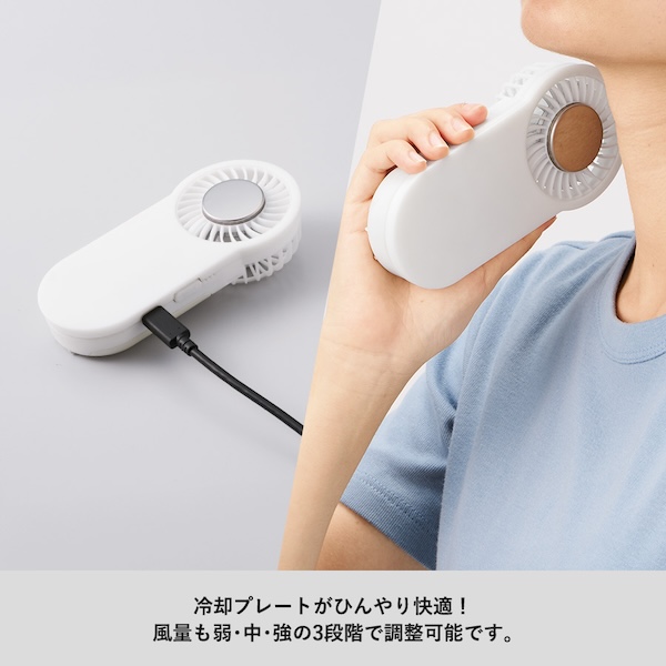 風量は弱中強の3段階で調節が可能かつ、冷却プレートもついており