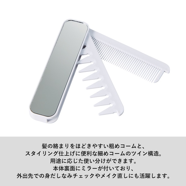 2種のコームとミラーが一つになった折りたたみコームです。