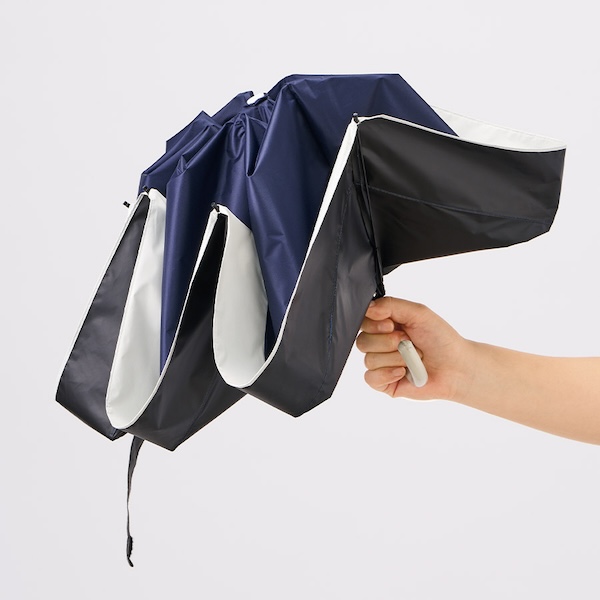 ドーム型の深張りタイプで、通常の傘に比べ、広く体をカバーでき