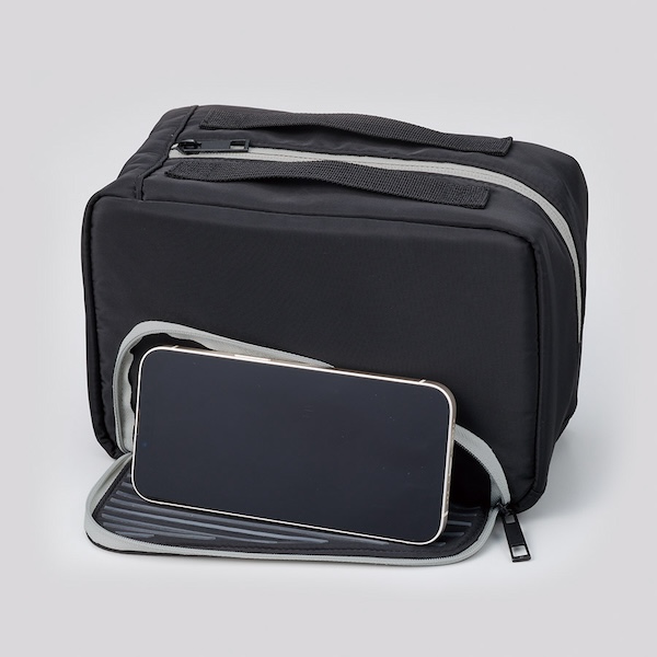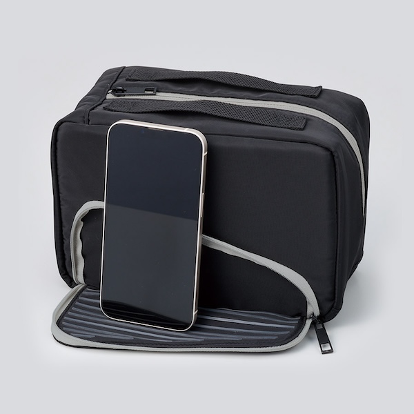 スマホスタンドにもなる保冷ランチポーチです。