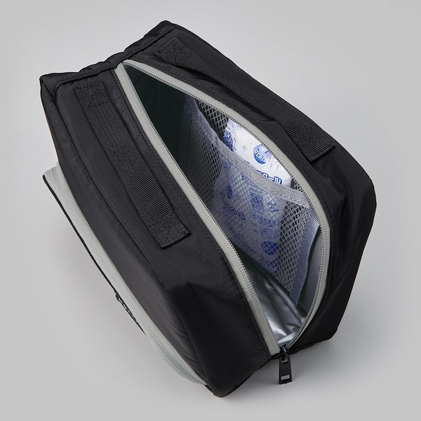 さらに内側にはメッシュポケット付きで保冷剤を入れてご使用いただくことで更に保冷効果を高めてくれます。