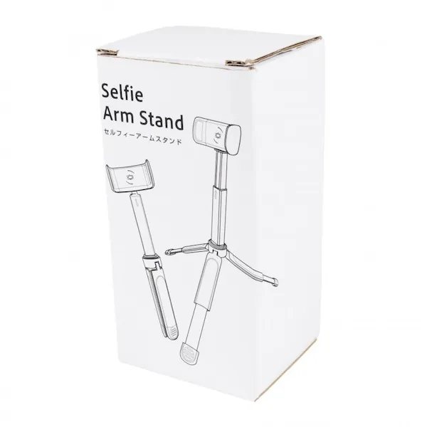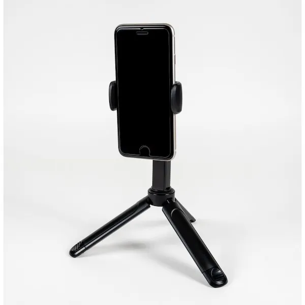 ハンドル部分は閉じると持ちやすく、開くとスタンドになるすぐれものです。自宅や外出先、旅先での写真や動画の撮影、配信にも活躍します。