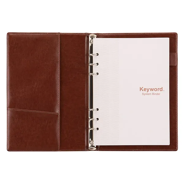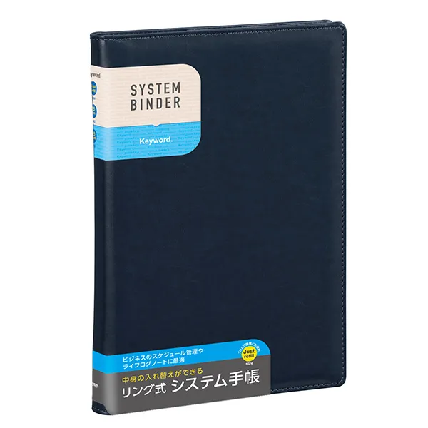 高級感のあるシステム手帳でリーズナブルな価格を実現しました。スリムなリングを使用し持ち運びの邪魔になりません。