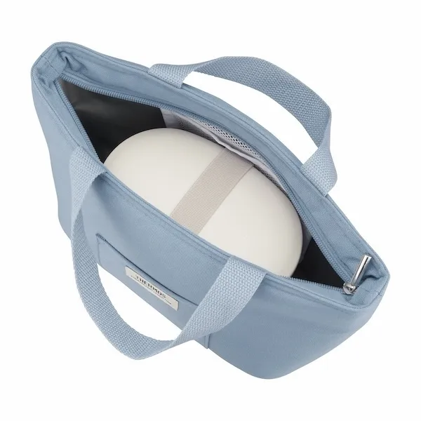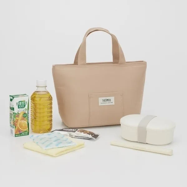 トートバッグタイプの保冷ランチバッグ。内側には保冷剤がセットできるメッシュポケット付き。