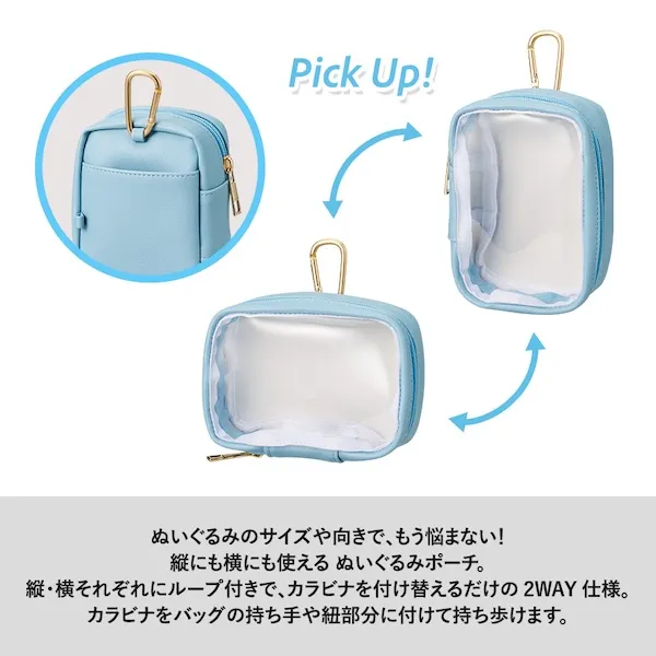 縦にも横にも使えるぬいぐるみポーチです。