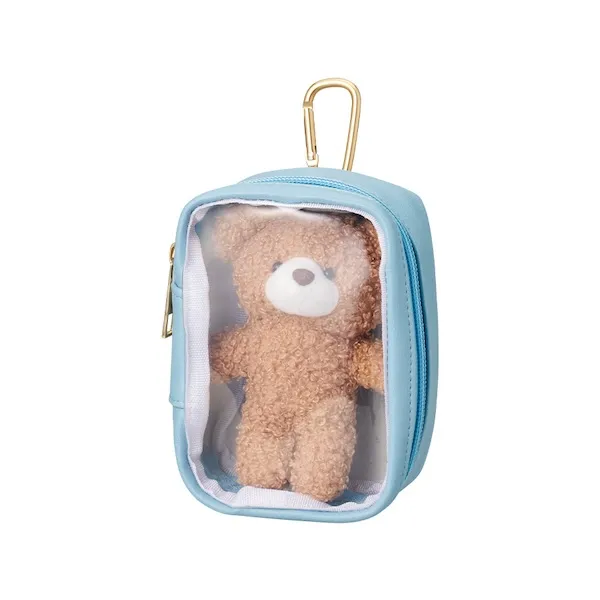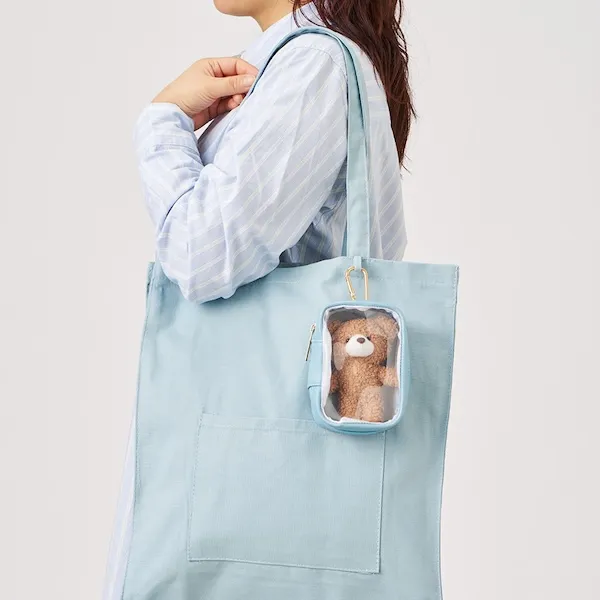 本体前面は中身が見えるクリア素材で、ぬいぐるみや推し活グッズを収納・保護することができます。