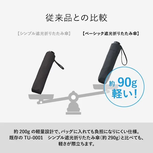 シンプルなデザインの遮光折りたたみ傘です。