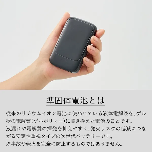 準固体電池を使用したモバイルチャージャーです。