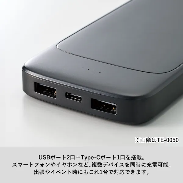 USBポート2つ、Type-Cポートが1つついており複数デバイスの同時充電が可能です。