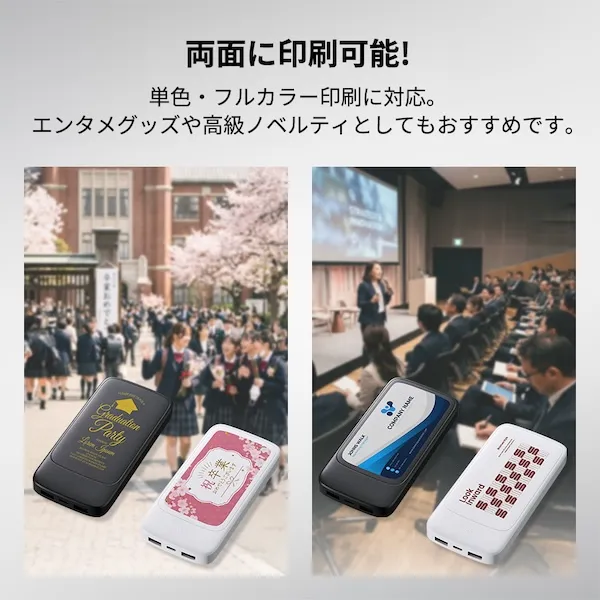 両面に単色またはフルカラー印刷が可能で、アニメや漫画などのエンタメグッズのほか