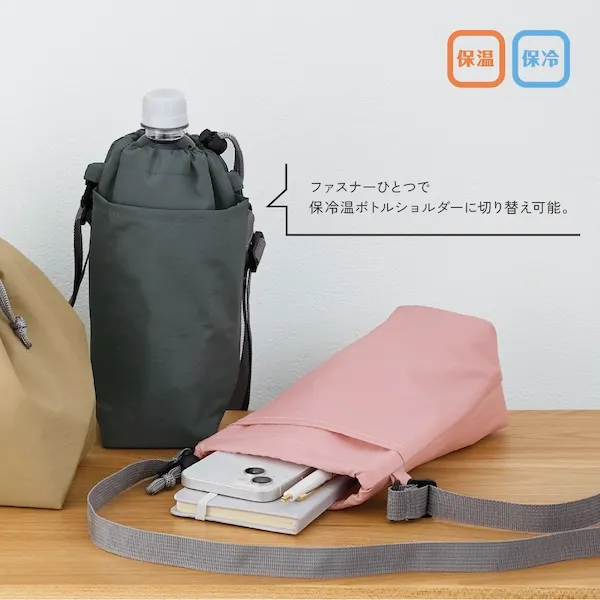 小物や飲み物を分けて持ち運べるマルチショルダー。