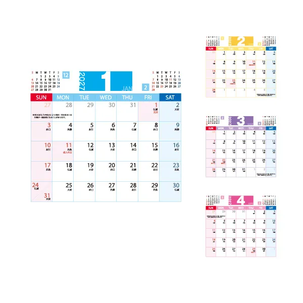 組み立て式のスタンドカレンダーです。CDケースのように奥行のスぺースはとりません。デスクを少しでも広く有効利用していただけます。