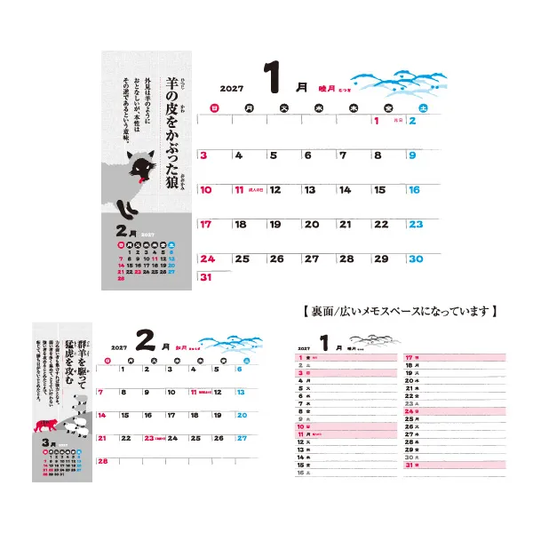 裏面にはスケジュール管理に便利な広いメモスペースがついています。