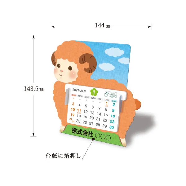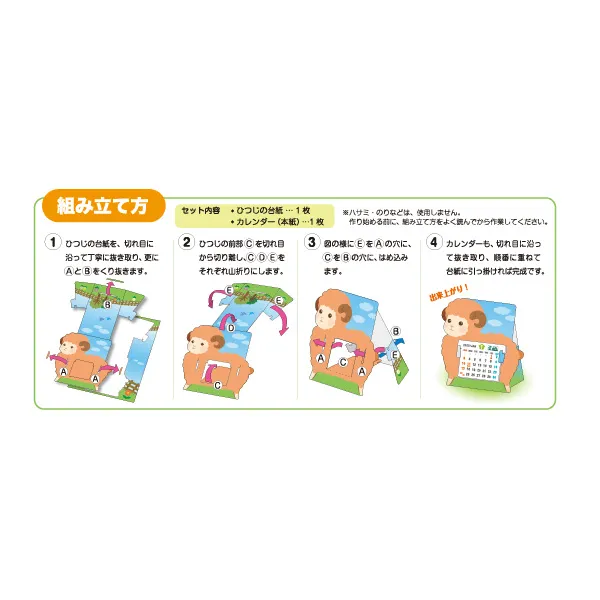 自分で組み立てできるかわいい干支の形のペーパークラフトカレンダーです。切り取るだけで誰でも簡単に組み立てることができます。すべて紙使用の環境にやさしいカレンダーです。FSC森林認証紙を使用した森林の環境保全に配慮したカレンダーです。