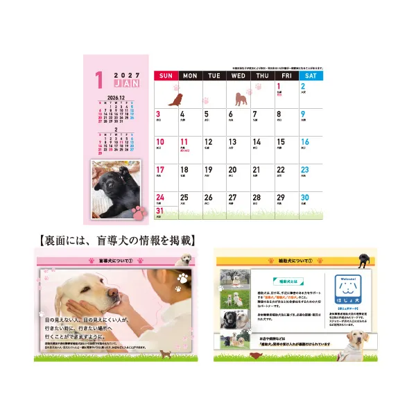 *売上の一部が日本盲導犬協会の活動資金として寄付されるチャリティカレンダーです。
