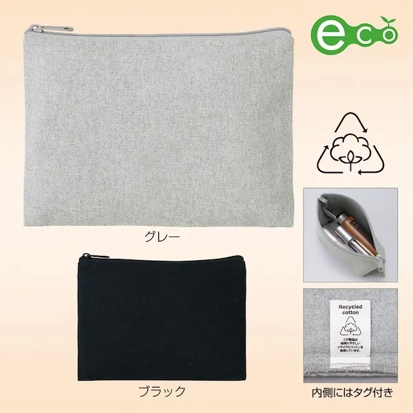 大きすぎず小さすぎない万能サイズ。リサイクルコットンを使用した、地球に優しい快適な薄手ポーチです。もちろん名入れもOK。ポーチはシーズン問わず人気のノベルティのため、おしゃれで使い勝手の良いものを選ぶことでプロモーション効果もアップします。企業や会社の販促品・ノベルティでお困りの場合、おしゃれで安いオリジナルのものをご提案します。