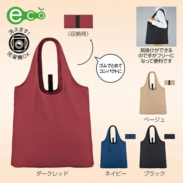 くすみカラーとマルシェ型が特徴のお洒落なエコバッグ。ナイロン素材でワンランク上の高級感を。流行を問わないシンプルで洗練されたデザイン、持ち運びしやすい形状。利便性が高いアイテムは、それだけプロモーション効果も長く期待できます。もちろん名入れOKです。企業や会社の販促品・ノベルティでお困りの場合、おしゃれで安いオリジナルのものをご提案します。