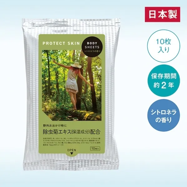 シトロネラの爽やかな香りの日本製ボディシート。レジャー向けノベルティに最適。屋外で活躍するアイテムは、春夏の販促品の中でも特に人気。おしゃれに敏感な女性や社会人やファミリー向けなど、幅広いイベントのノベルティにおすすめです。企業や会社の販促品・ノベルティでお困りの場合、おしゃれで安いオリジナルのものをご提案します。