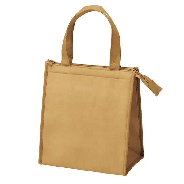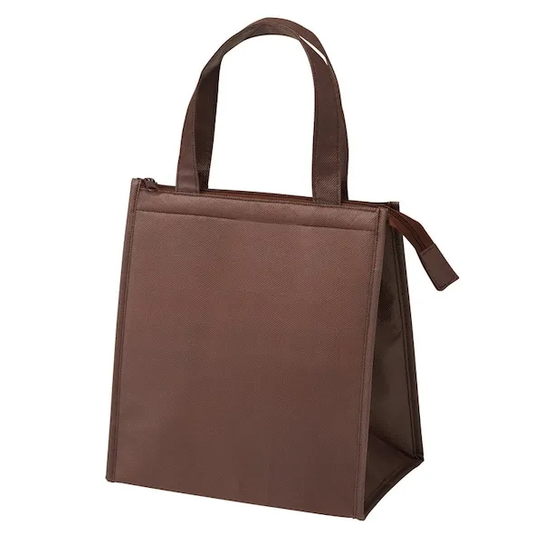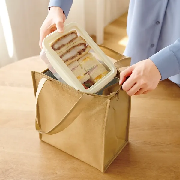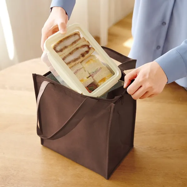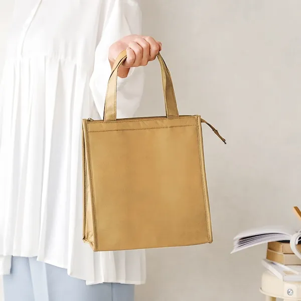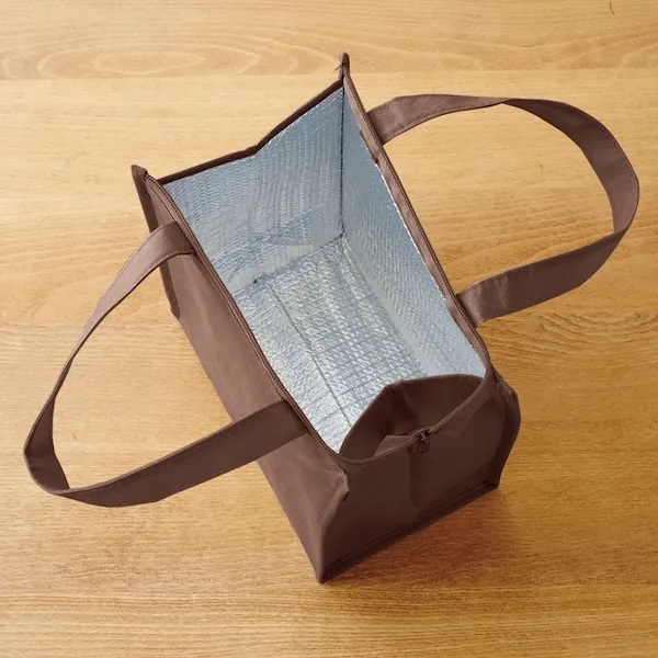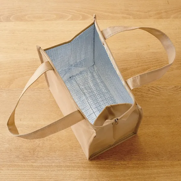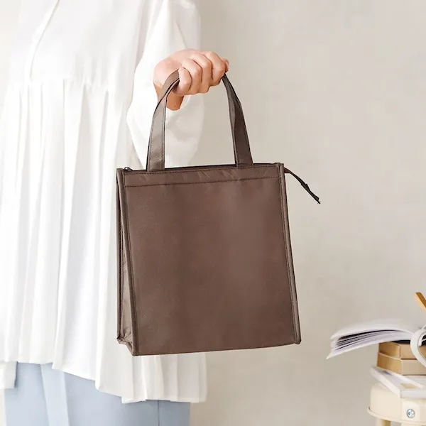 軽量で丈夫な不織布製。500mlペットボトルを立てて入れることができるサイズとシックな色味が特徴です。アルミ蒸着フィルムを使用した、シンプルで機能性の高いデザインなので、名入れ効果も長く期待できます。ファミリー向け、個人向けどちらのノベルティにもおすすめです。企業や会社の販促品・ノベルティでお困りの場合、おしゃれで安いオリジナルのものをご提案します。
