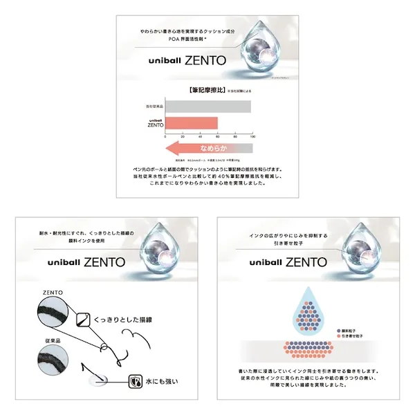 こだわりのZENTOインクとラバーグリップで書き心地の良さを引き出した、ボール径0.38mmのスタンダードタイプの水性ボールペン。ステーショナリーのノベルティは公私を問わず活用でき、渡しやすく受け取りやすいことが特徴です。セミナーや企業説明会などの販促品にどうぞ。企業や会社の販促品・ノベルティでお困りの場合、おしゃれで安いオリジナルのものをご提案します。