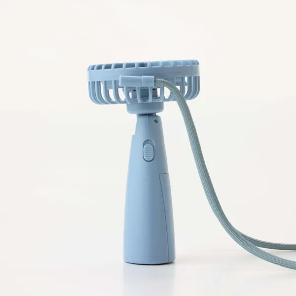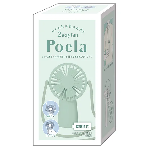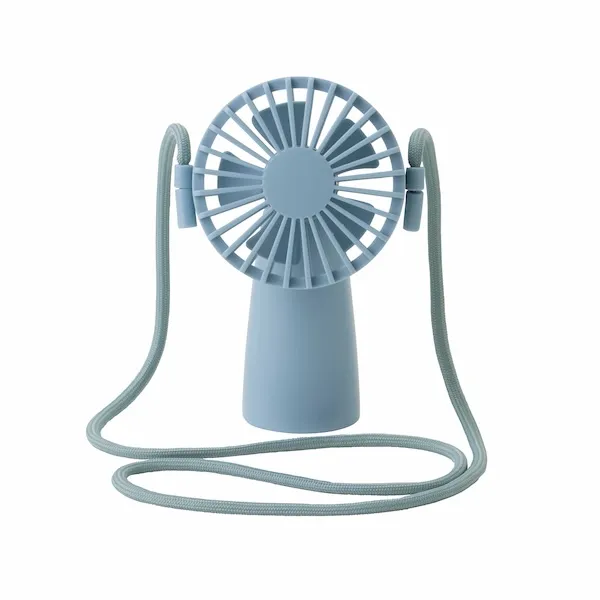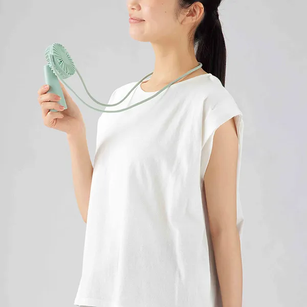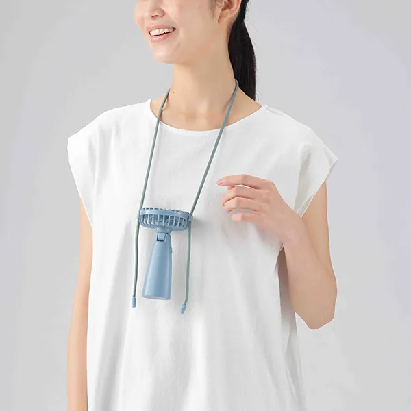 首にかけて、手に持って。2WAYで使える便利なファン。乾電池式で、いつでもどこでも涼しい!